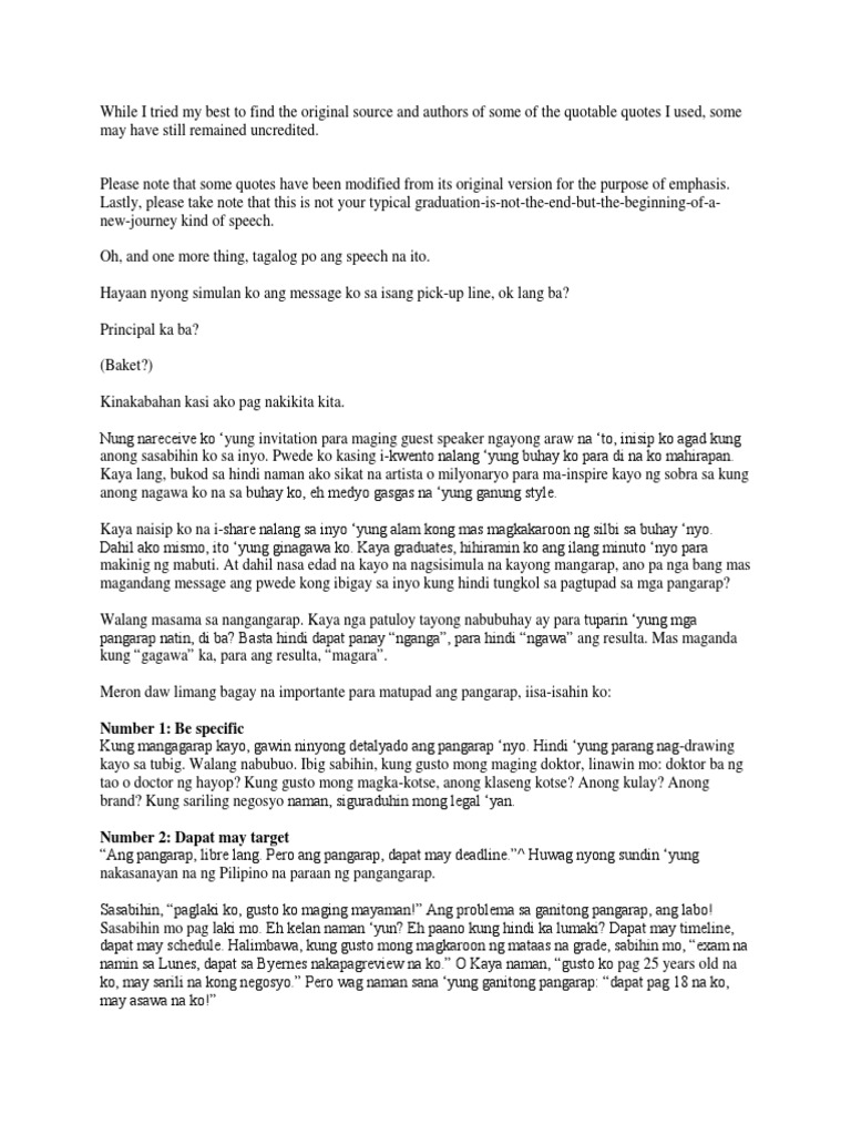 Talumpati ni Jay-ann S. Aug 07 2017 Aking tinanong si Ronggilyo tungkol sa kaniyang mga pangarap. May recycling pa silang ginagawa ipinagbibili nila ang mga nakukuha nilang papel plastik bote at bakal bago.