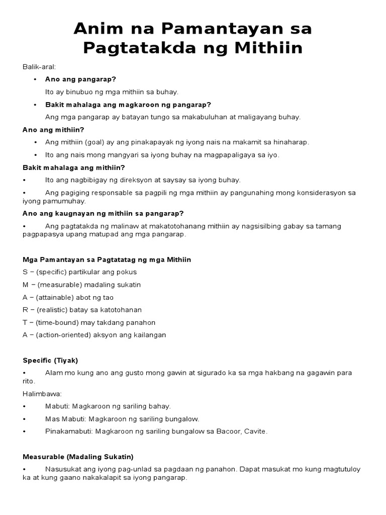 Anim Na Pamantayan Sa Pagtatakda Ng Mithiin